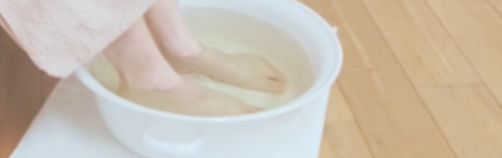 はじめに10分間の足湯をします。足裏から膝下までの反射区(ツボ)を刺激し、関節の動きやアライメントも整えます。